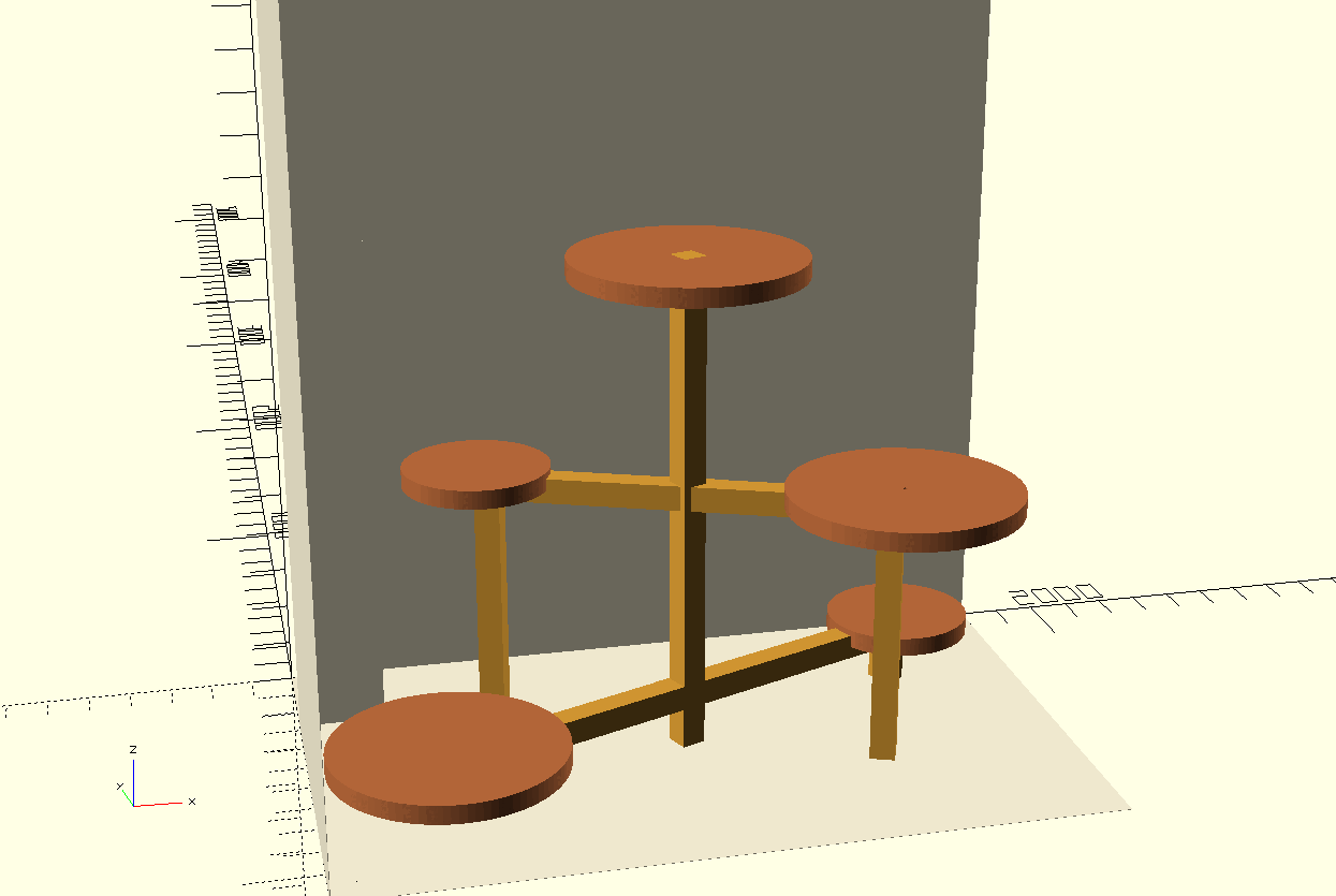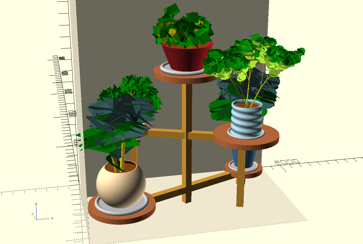 Een ‘stam’ met blad en twee ‘takken’ met ieder twee bladen om planten op te zetten.