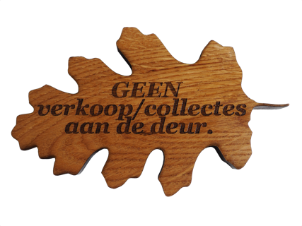 De vorm - eikenblad of iets anders - is zelf te kiezen, net als het opschrift of de afbeelding erop.