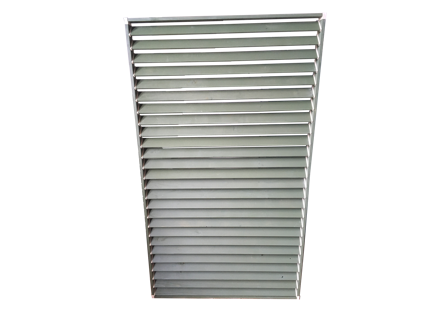 De lamellen hebben een vaste 45º graden hoek. Horrengaas aan de binnenkant van het luik is een optie.