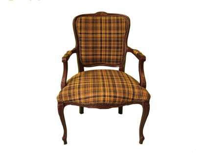 De stoel is compleet gestript, daarna zijn vering, zitting en leuningen opnieuw gedaan en is het geheel gestoffeerd.